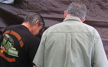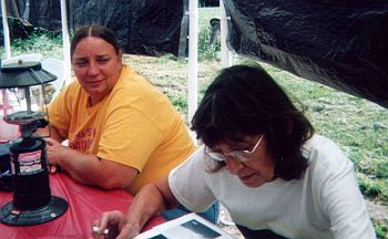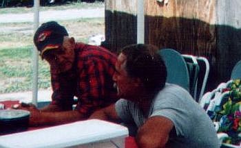 | Jeri McCain, Angie Gregory | Dennis Engelhart, Steve Jones looking at pictures and memories | ||