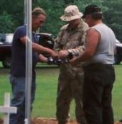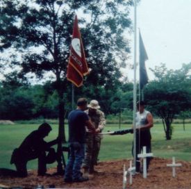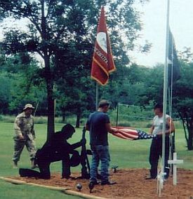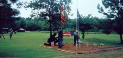 Larry and Jeri's son, Ryan White, currently on active duty with the military, participated in the daily ritual of raising and lowering the colors with Larry and Jerry Vile. Thank you Ryan! |
