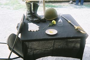 Memorial service with honorary chaplain Jerry Borden and Ronald Borden. Ronald Borden sang "Old Friends" for our guys |