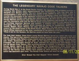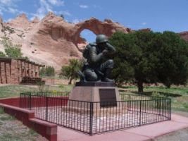 Entrance to the Navajo Museum, with monument dedicated to the Navajo Code Talkers and Window Rock in the background. |